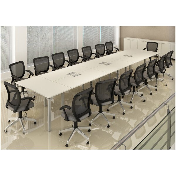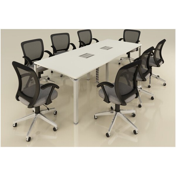 A través de bocas de acceso de aluminio con tapas pop-up, accedemos a un conducto que vincula toda la longitud de la mesa logrando que fácilmente podamos conectar nuestra notebook, pc o tablet a una red o a la línea de alimentación.