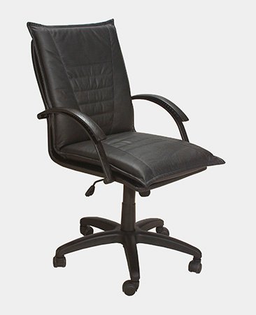 Tapizado en tela o ecocuer. Espuma de alta densidad. Apoyabrazos realizados en nylon. Base compuesta por nylon y fibra de vidrio de alta resistencia. Sistema basculante con control de tensión. Regulación neumática de altura del asiento. Opcionales: Apoyabrazos elíptico negro o cromado/ Estructura trineo en color negro (acabado texturado)/ Base cromada / Base plástica con alma de acero.