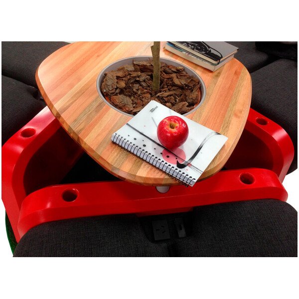 Un elenco de accesorios tales como mesas, pupitres, mesa macetero, percheros, etc. completa este sistema flexible y funcional.